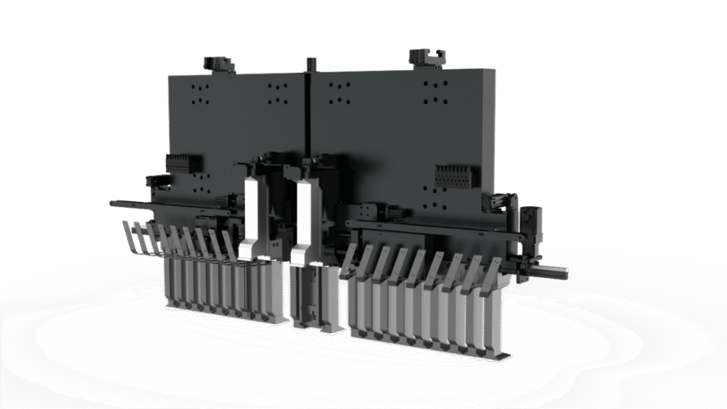 El cambiador de herramientas automático permite automatizar el proceso de producción, realizando el cambio de herramientas de forma rápida y precisa incluso durante el ciclo de doblado. Esto optimiza los tiempos de ciclo, mejora la productividad y reduce la intervención del operador, garantizando una mayor eficiencia y consistencia en los resultados.